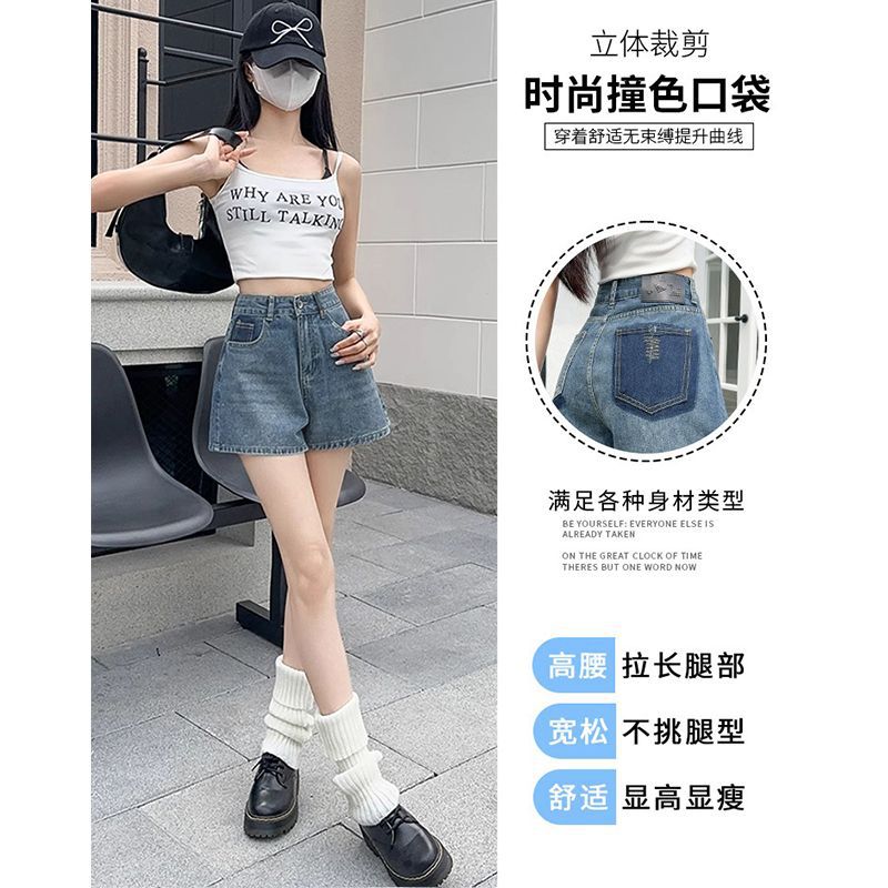 高腰牛仔短裤女夏季薄款新款宽松美式小个子a字阔腿热裤辣妹