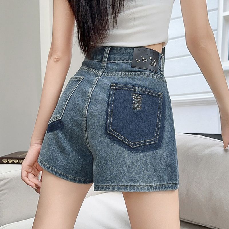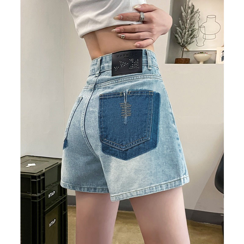 高腰牛仔短裤女小个子阔腿热裤