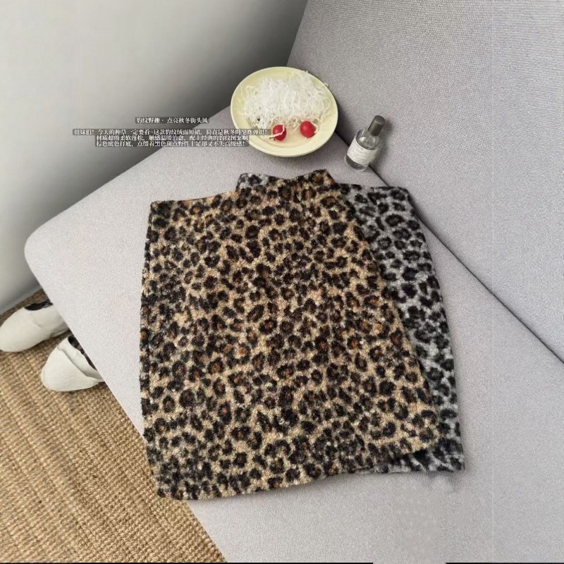 高腰羊羔毛豹纹半身裙女加厚中裙