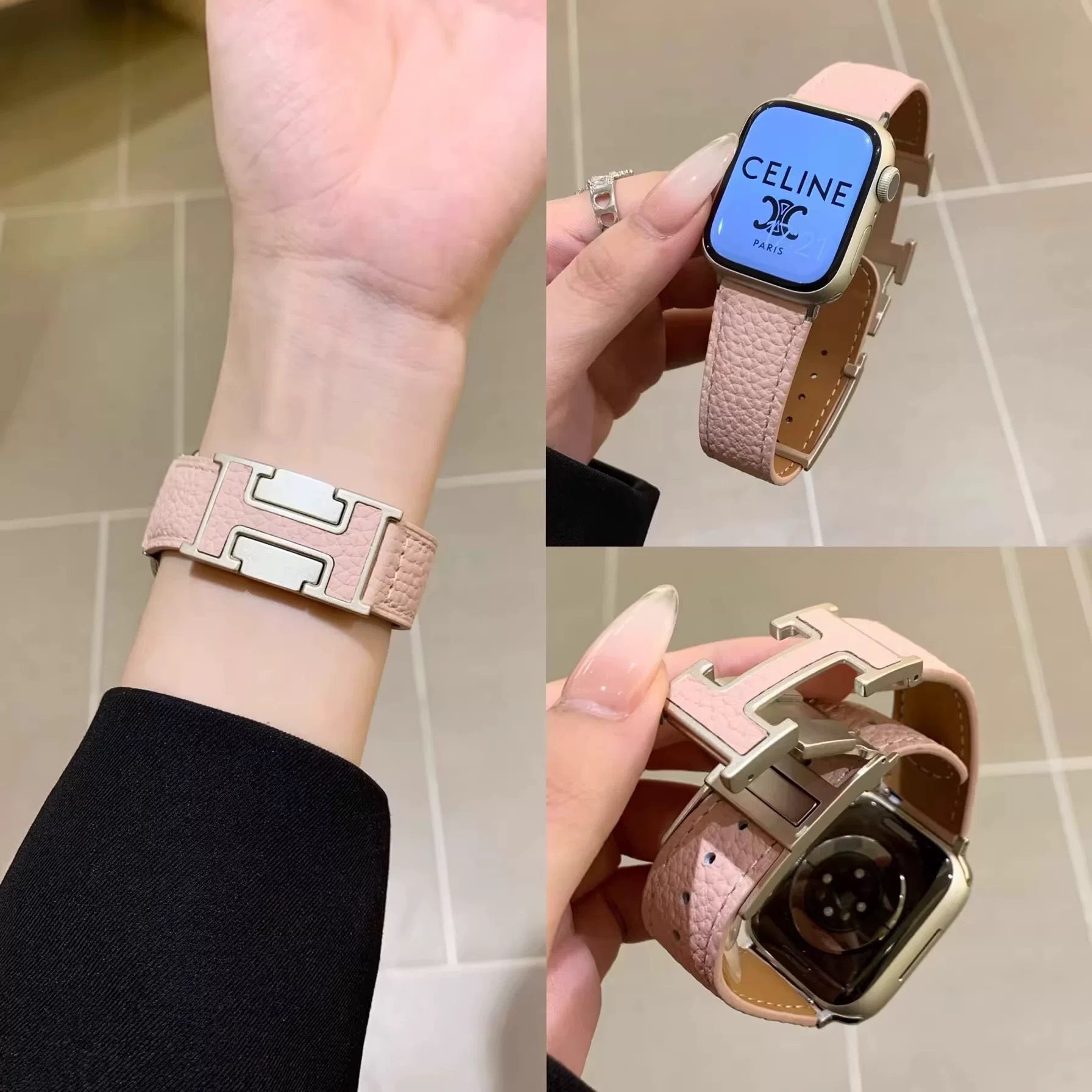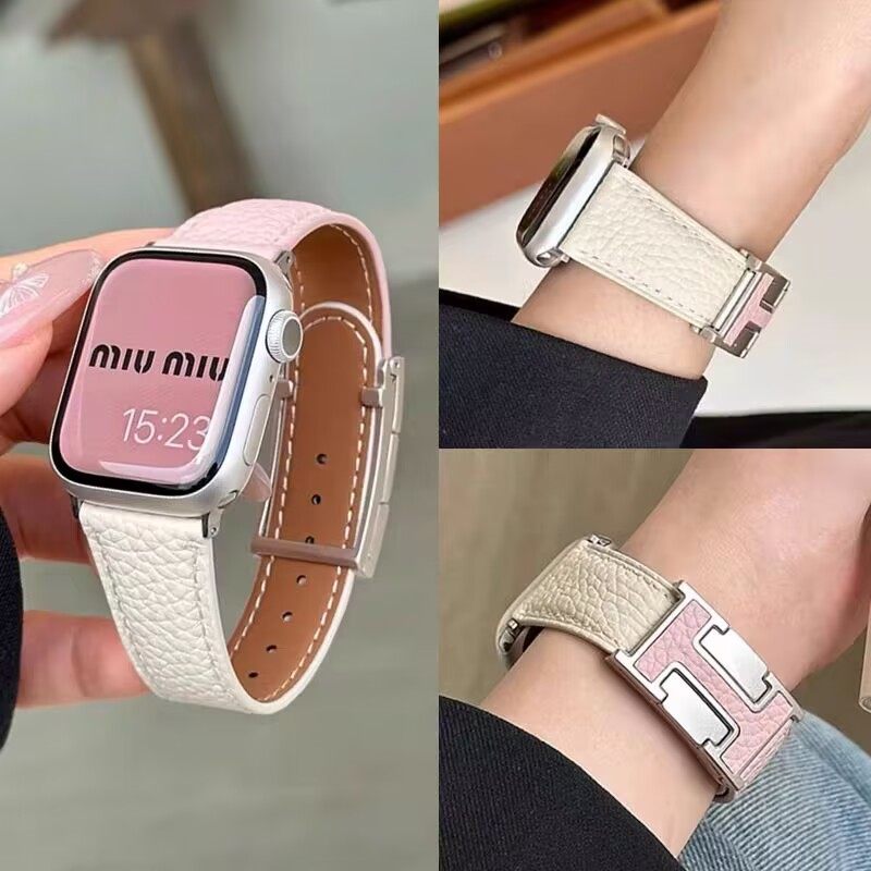 新款磁吸H扣荔枝纹真皮表带男女适用AppleWatch89se苹果s10高级感