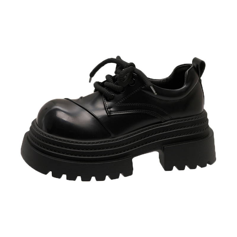 厚底小皮鞋女2025新款春秋季英伦风松糕增高圆头日系复古乐福单鞋