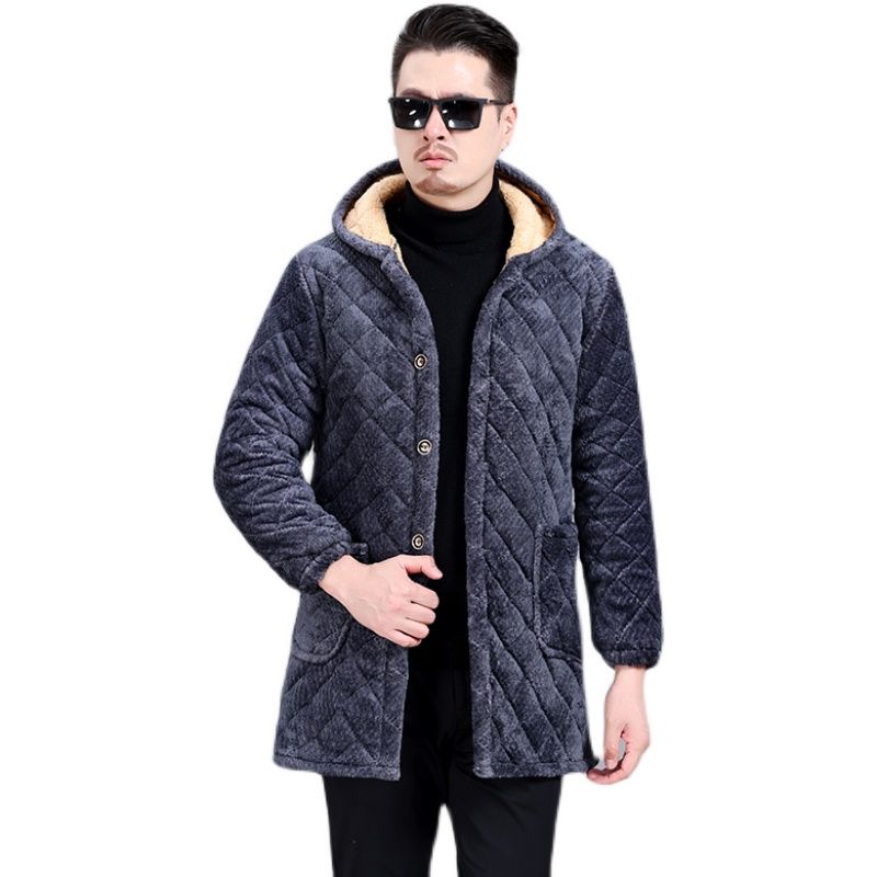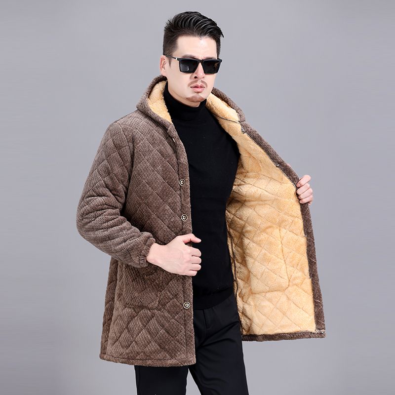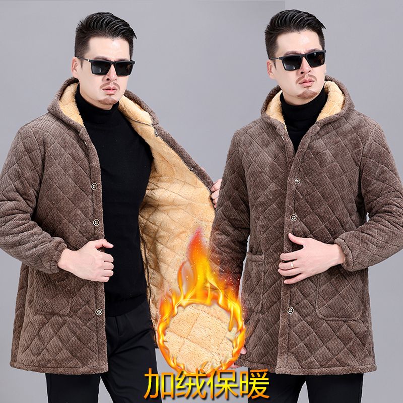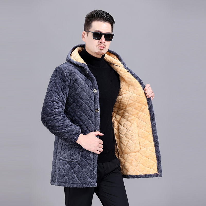 四川省服冬款加绒罩衣男连帽保暖加厚外套长款宽松防寒棉袄工作服
