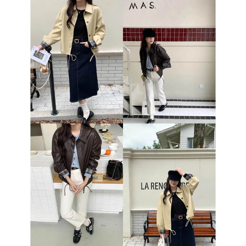 韩版高级2025 秋日特调 韩系下摆抽绳翻领PU皮衣外套ZY3508长袖成