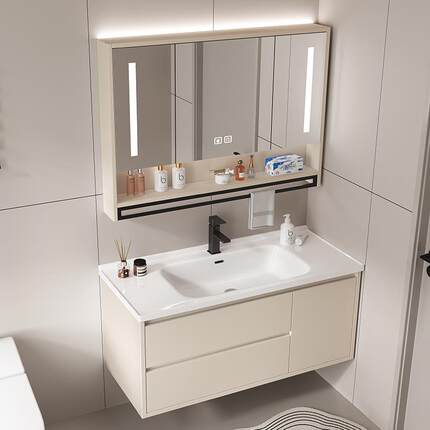 实木浴室柜陶瓷一体盆卫生间智能洗手池洗脸盆柜组合挂墙式洗漱台