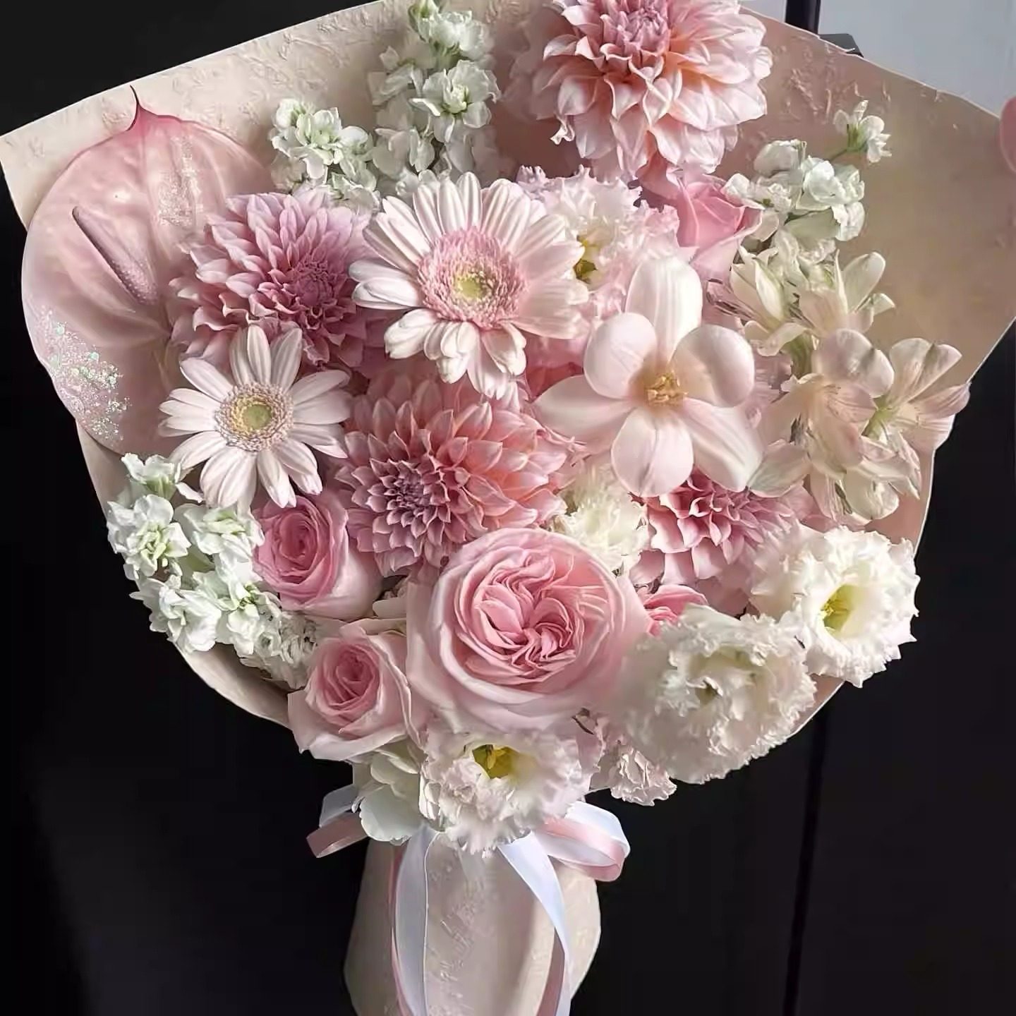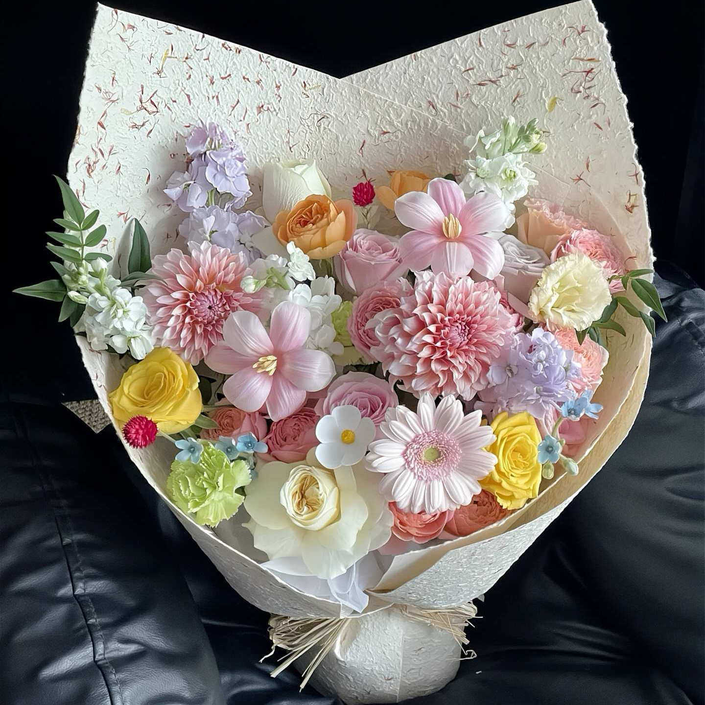 网红款奶油桃子郁金香荔枝混搭玫瑰花束上海同城闺蜜女朋友生日