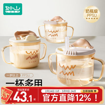 如山儿童水杯牛奶杯1-2-3岁以上宝宝吸管奶瓶刻度PPSU学饮直饮杯