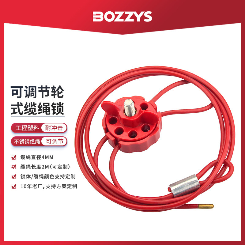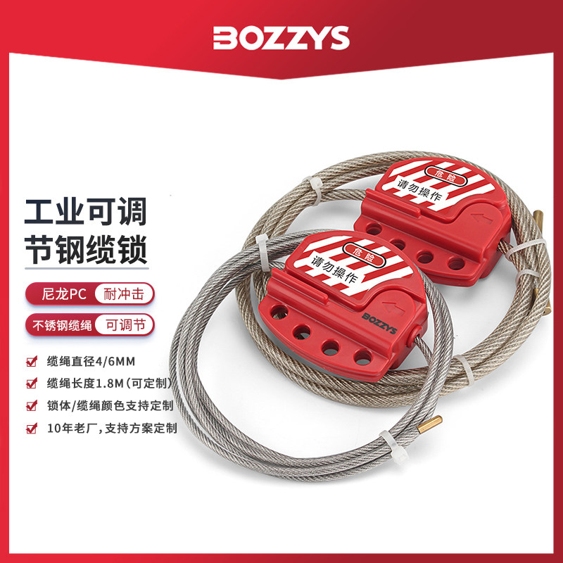 BOZZYS可调节钢丝锁6MM不锈钢加粗缆绳锁挂牌上锁安全锁具BD-L11