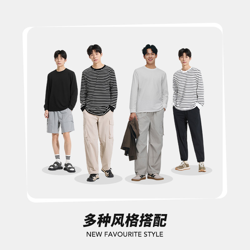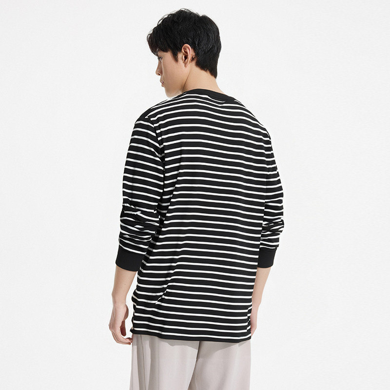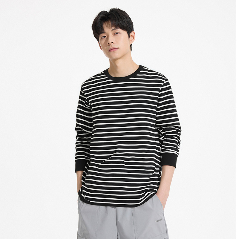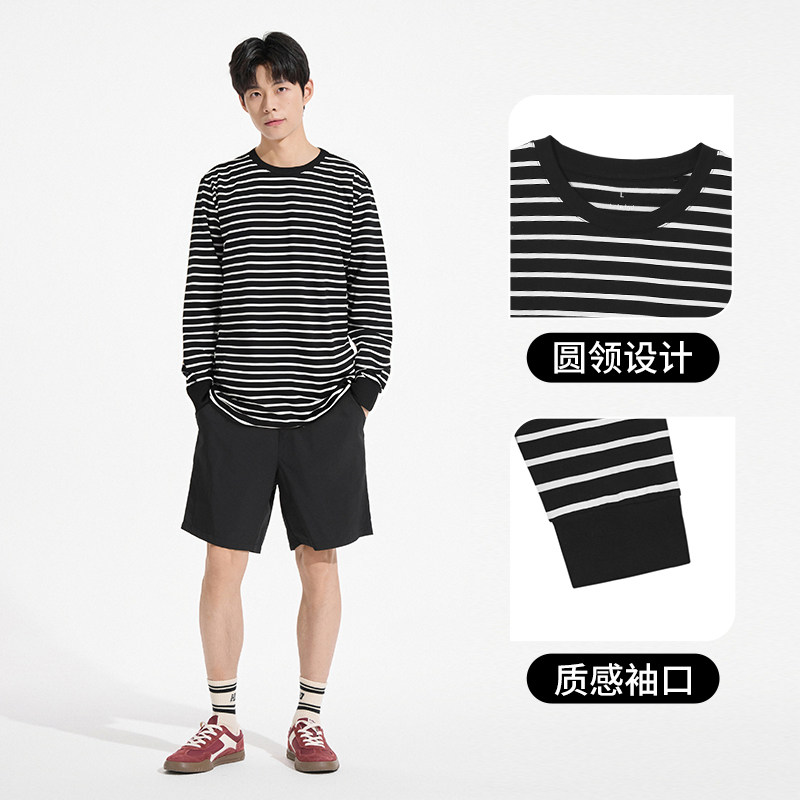 热风男士长袖T恤上衣2025年秋季新款基本款白色百搭条纹打底上衣