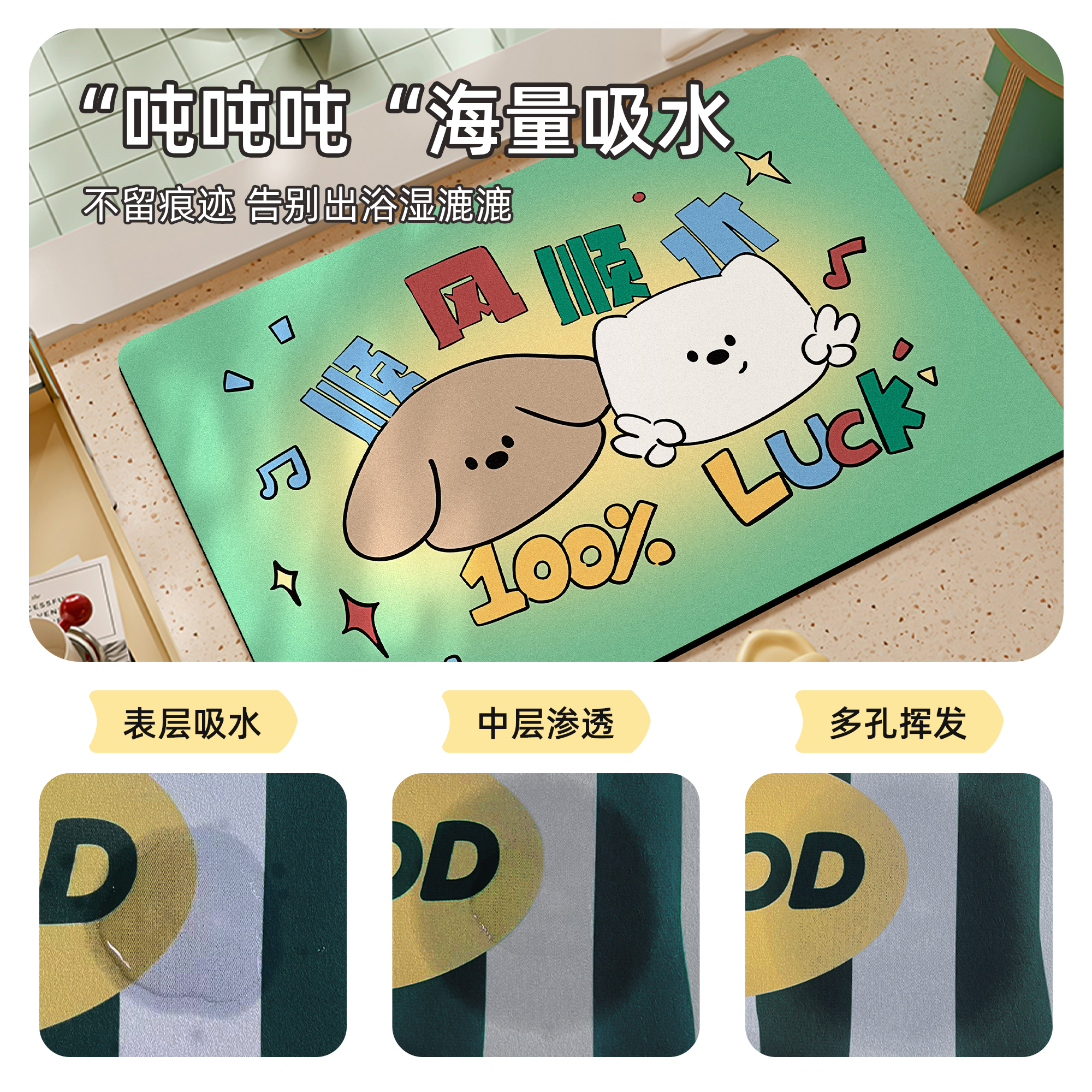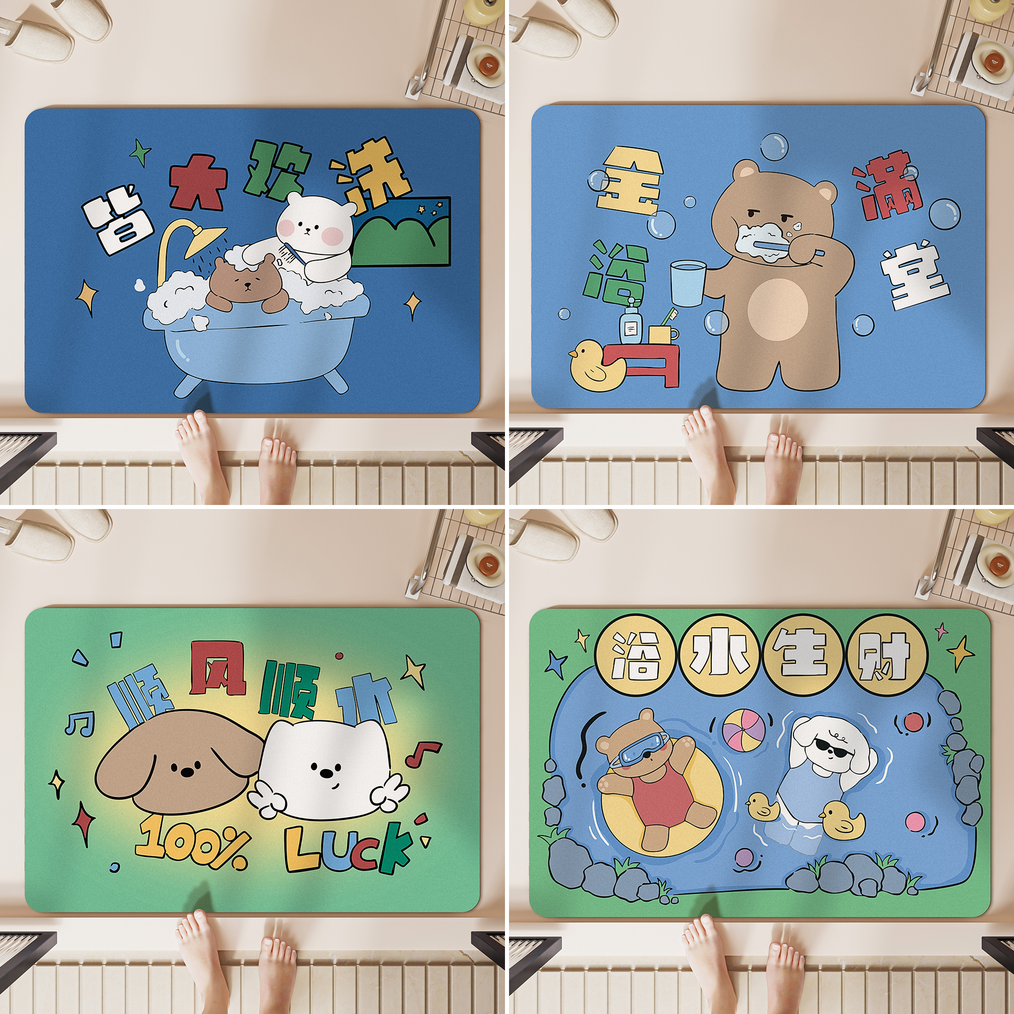 浴水生财卡通浴室地垫卫生间门口吸水防滑脚垫卫浴厕所洗手间地毯