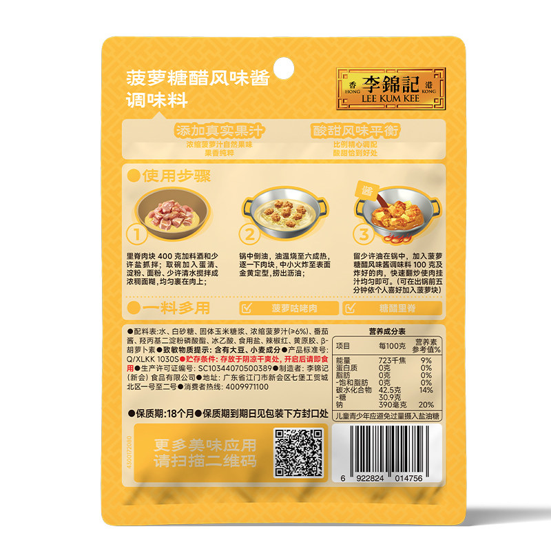 李锦记菠萝糖醋风味酱100g*3糖醋排骨里脊鱼烧烤料调味品甜蘸料酱