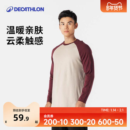 迪卡侬长袖男士休闲T恤柔软亲肤