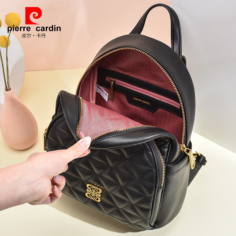 皮尔卡丹女包新款韩版时尚双肩包迷你小背包百搭牛皮斜挎包旅行包