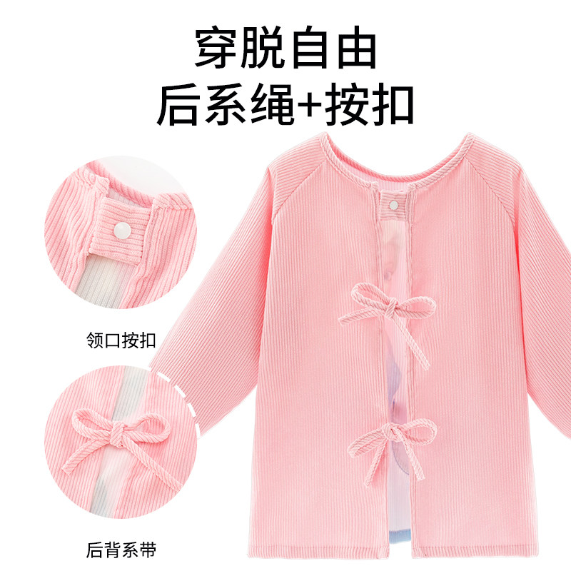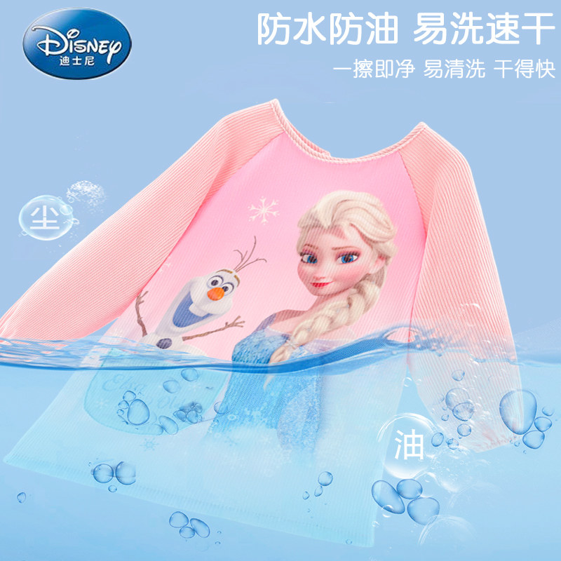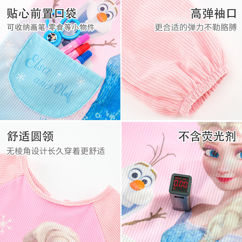 迪士尼儿童罩衣灯芯绒防水幼儿园女童反穿衣吃饭围兜女孩艾莎公主