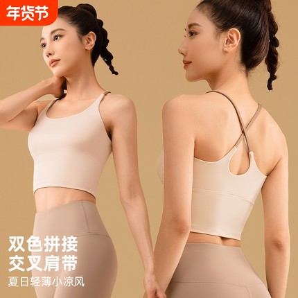 运动瑜伽服套装女夏新款高腰收腹带胸垫普拉提健身文胸吊带美背心