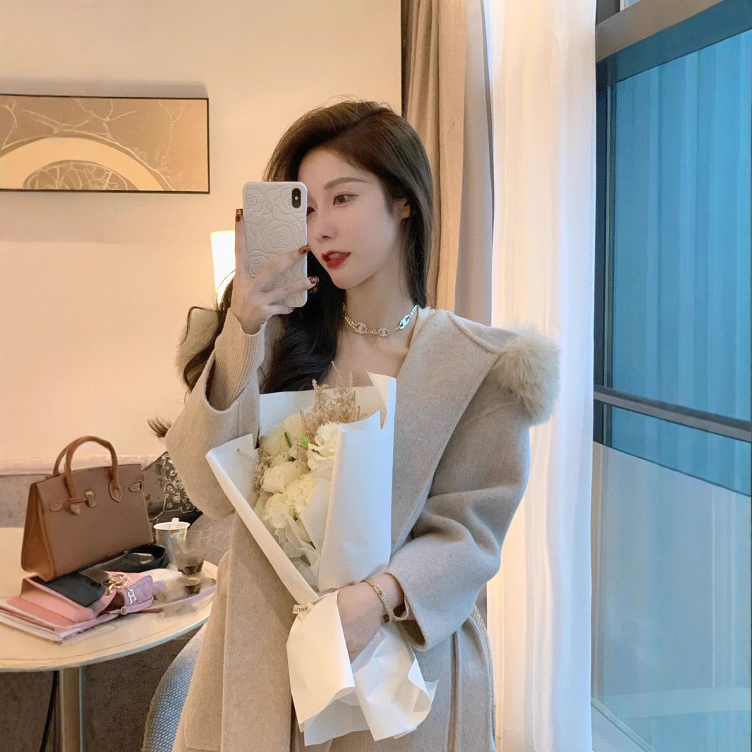 高级感羊绒双面呢子韩系短款大衣秋冬女装小个子气质收腰毛呢外套