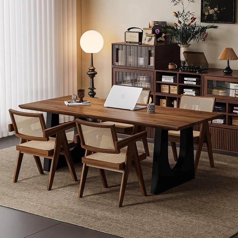 艾比森实木餐桌胡桃木客厅大长书桌工作台大板餐会议办公一体书桌
