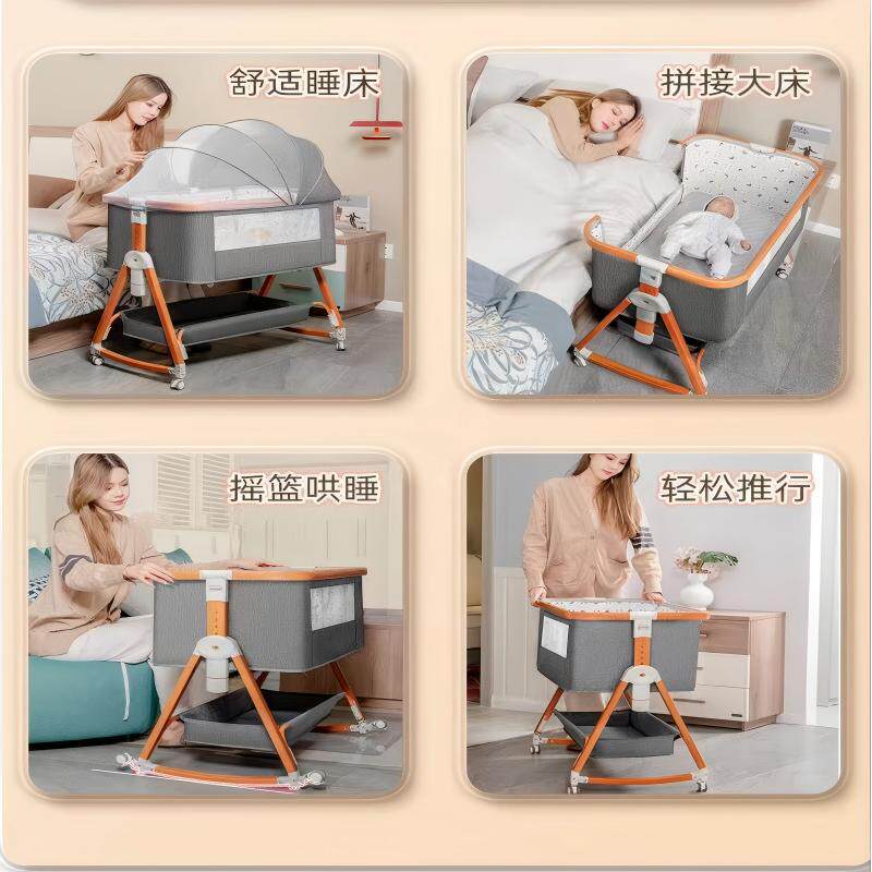 一键折叠免安装宝宝床尿布台移动拼接大床摇篮可移动新生儿婴儿床