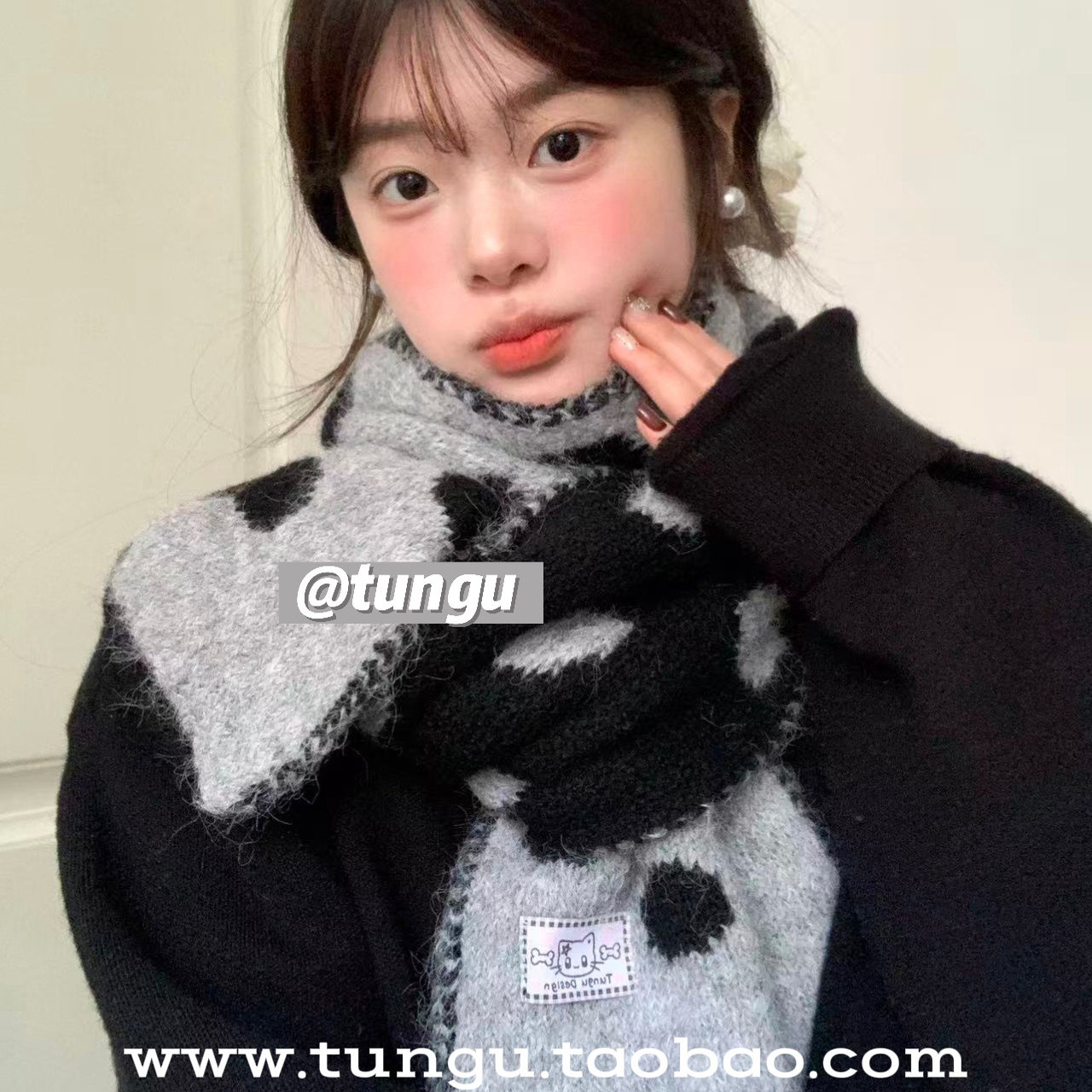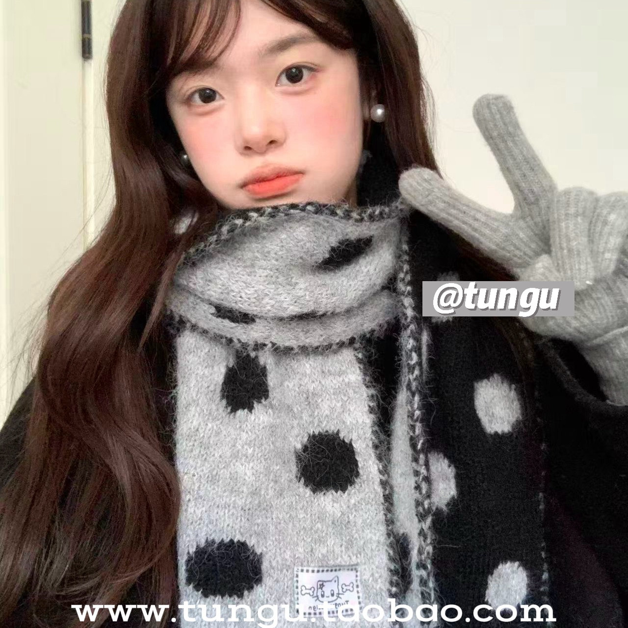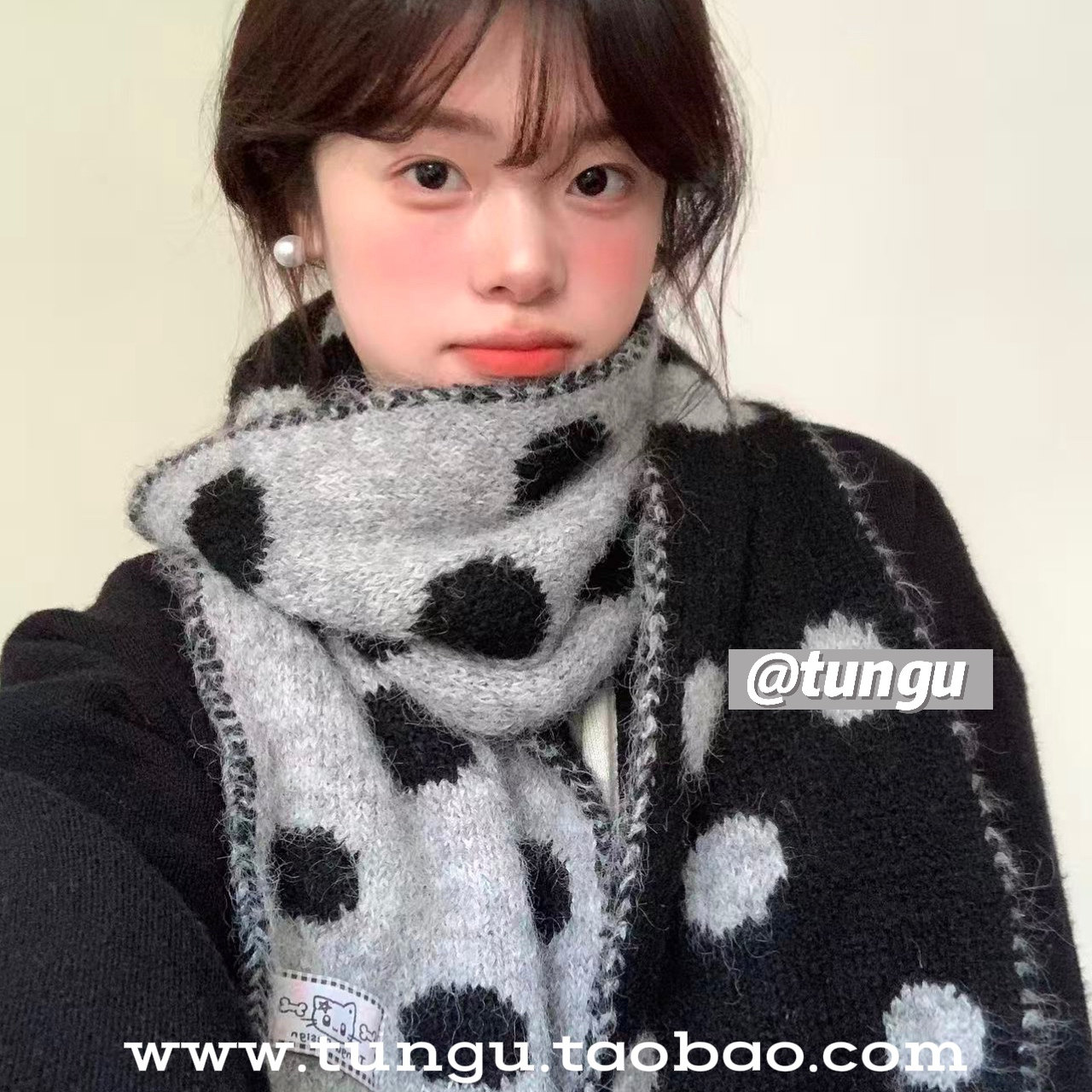 星月豚骨“黑猫波点”黑灰波点设计双面围巾韩系百搭秋冬保暖围脖