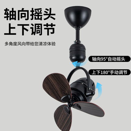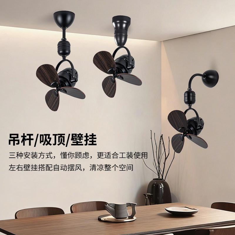 吊挂电风扇墙上摇头14寸迷你过道书房吧台壁挂两用大风量挂墙吊扇