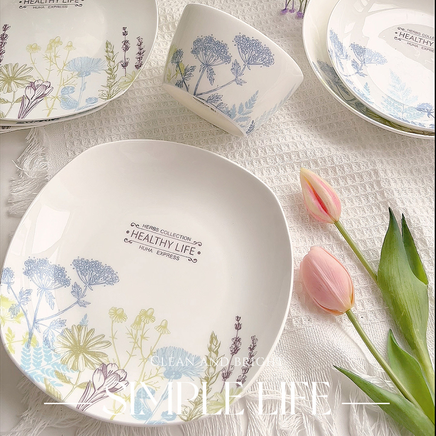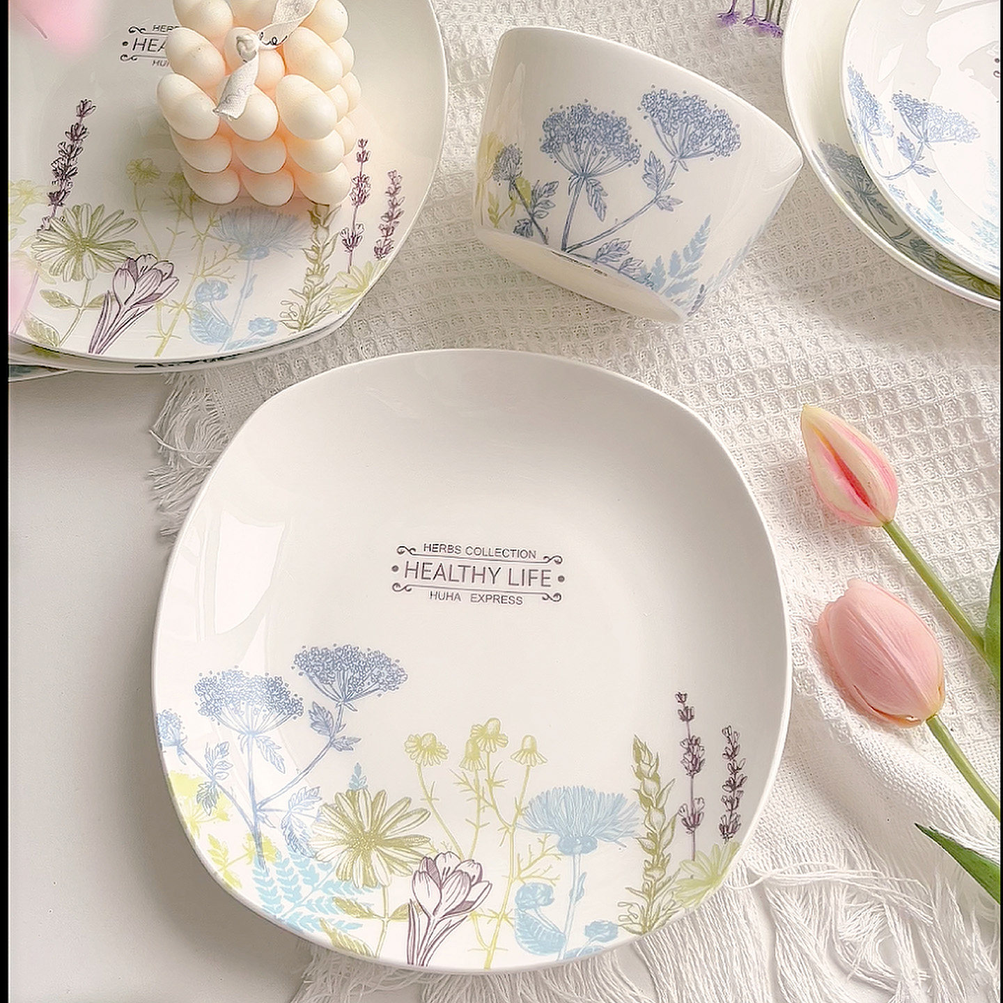 2025新款创意简约韩式一人食骨瓷饭碗餐具陶瓷碗碟方形盘子家用