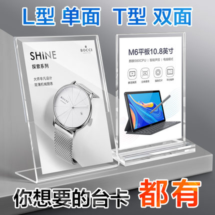 亚克力台卡 价格展示牌 a4双面立牌展台桌牌摆台定制奶茶店菜单价格牌展示架l型台签台卡架广告牌小牌子架牌