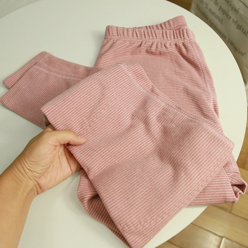 女士护膝秋裤德绒棉毛保暖衬裤修身线裤高腰秋冬细条纹宽松大码
