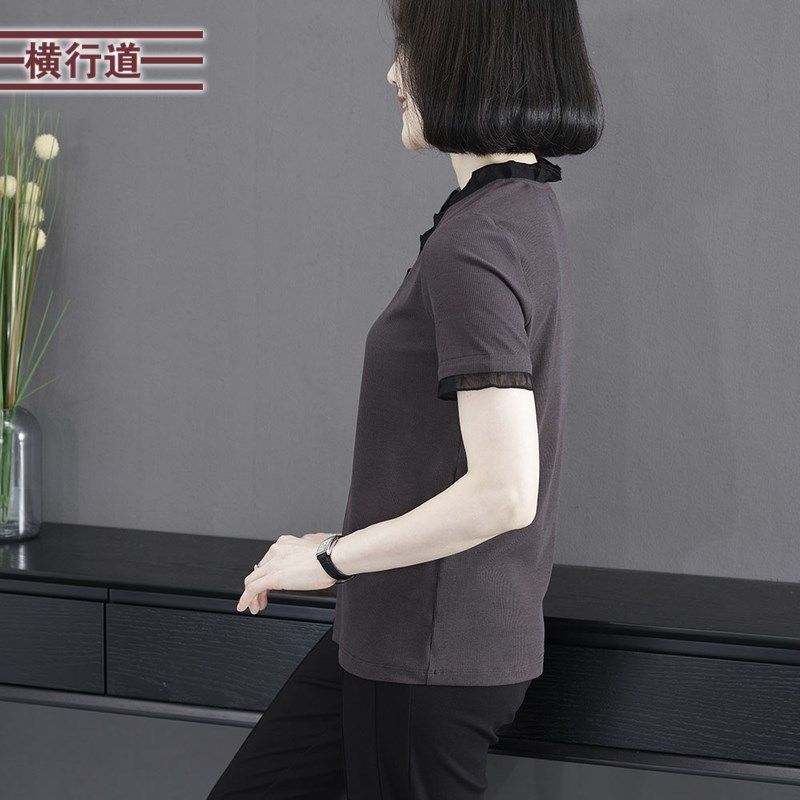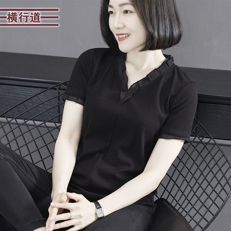 2025夏季新款简约休闲纯色V领雪纺拼接宽松短袖T恤女大码外穿上衣