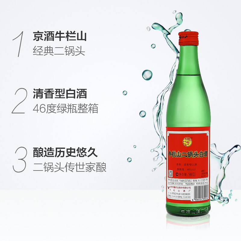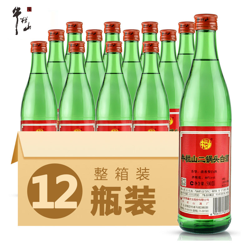 北京牛栏山二锅头绿瓶绿牛二46度清香型500ml*12瓶装 白酒整箱