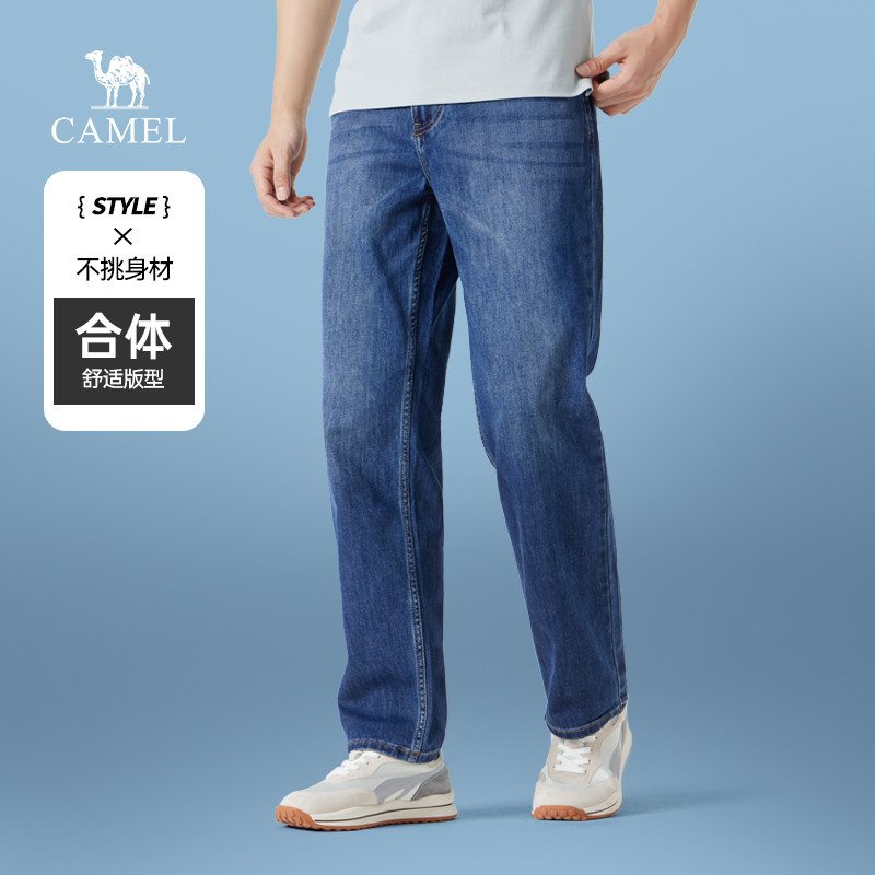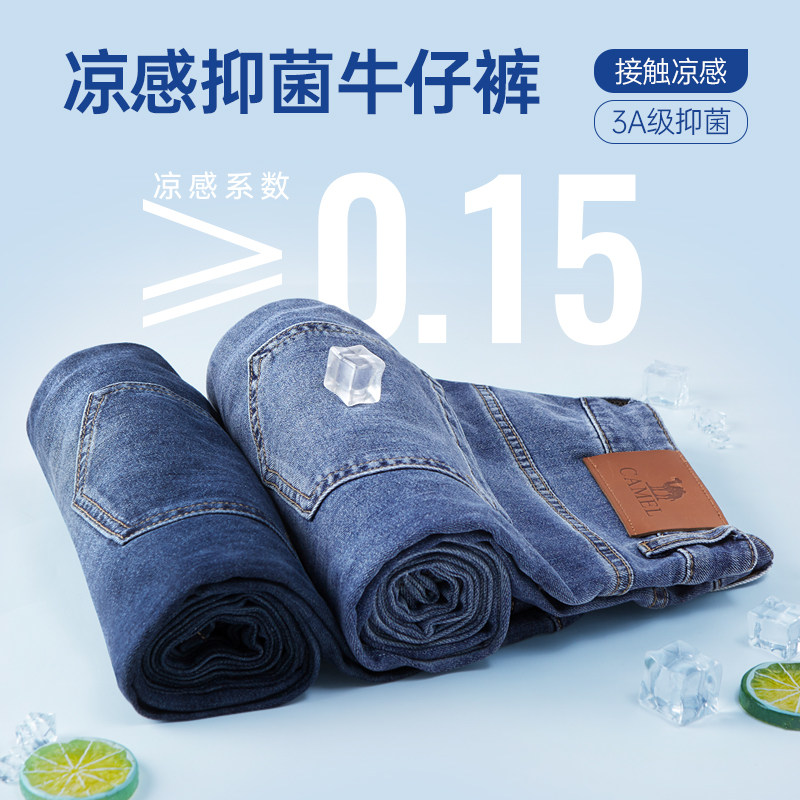 骆驼男装直筒牛仔裤男士2025春夏凉感抑菌柔软透气休闲长裤子