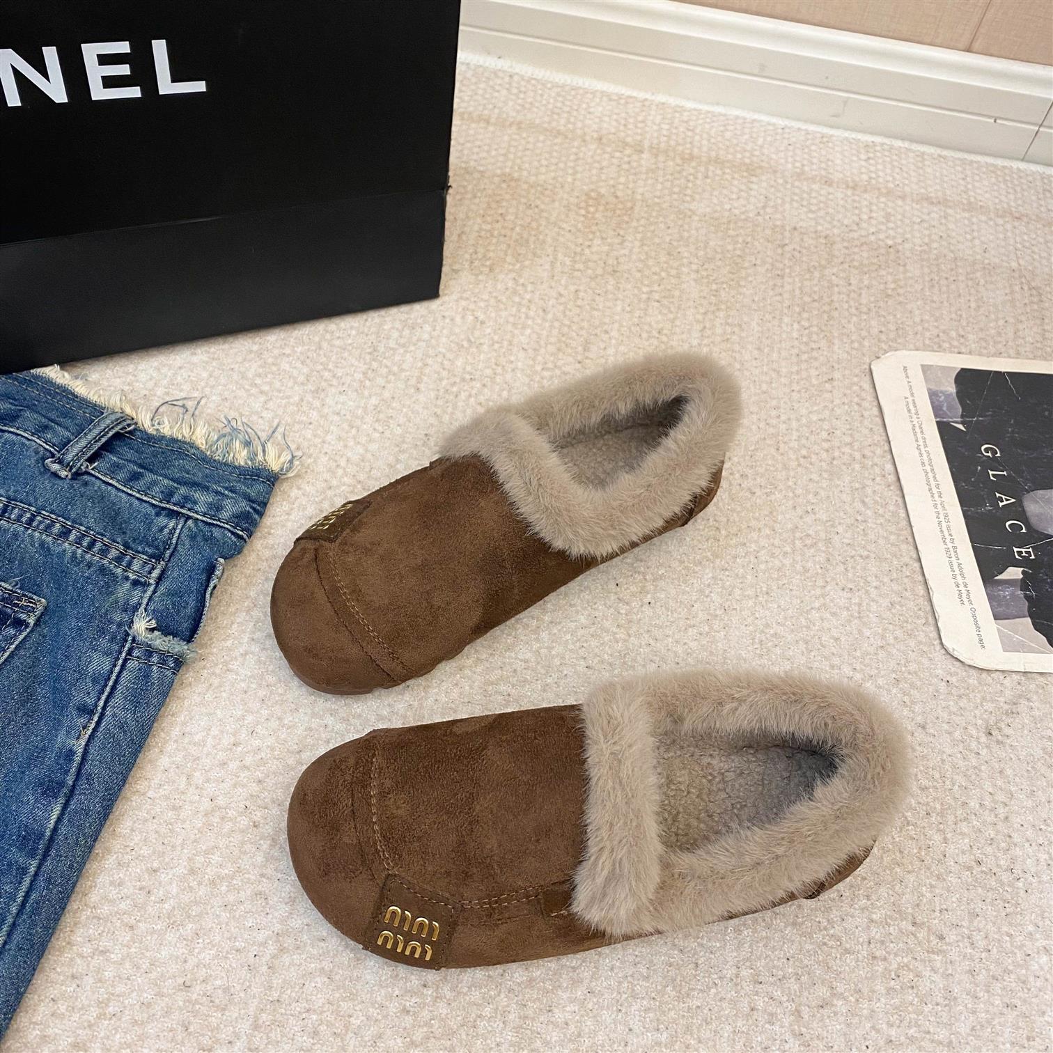 保暖雪地妈妈鞋2025年冬季新款棉鞋女软底软面一脚蹬加绒布鞋