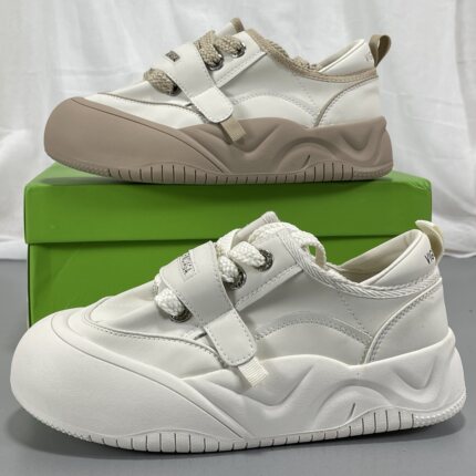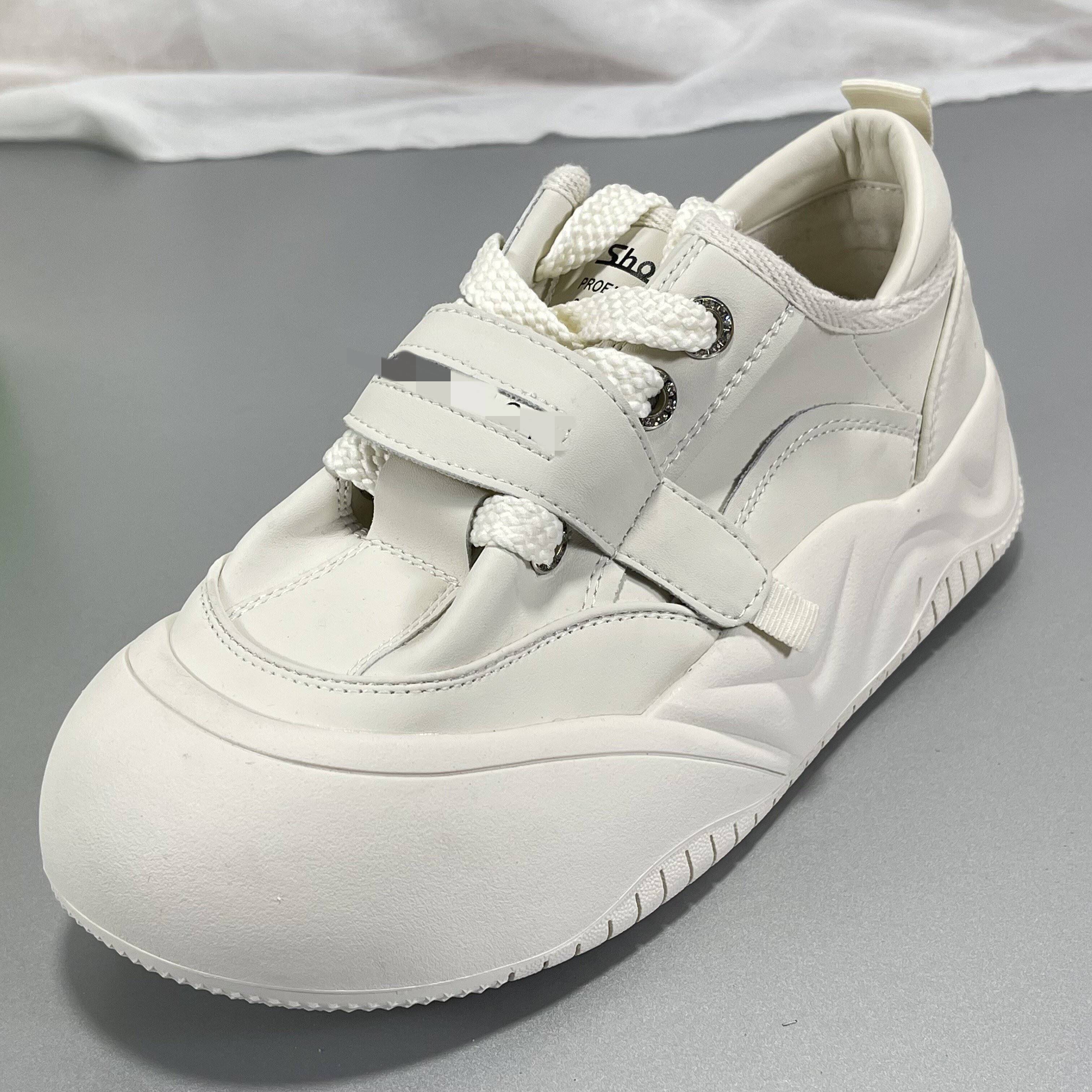 商场同款2025春秋丑萌真皮小白鞋女百搭透气大头厚底松糕休闲鞋子