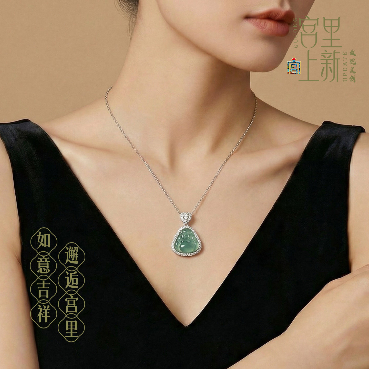 宫里上新天然冰种翡翠玉佛项链