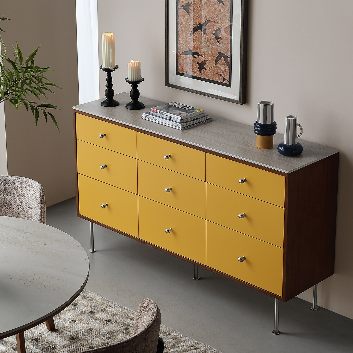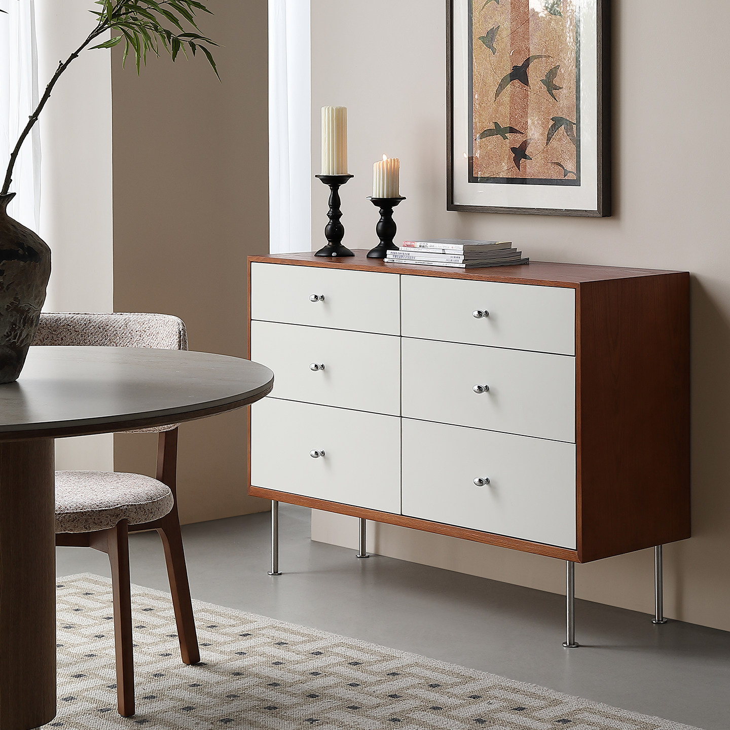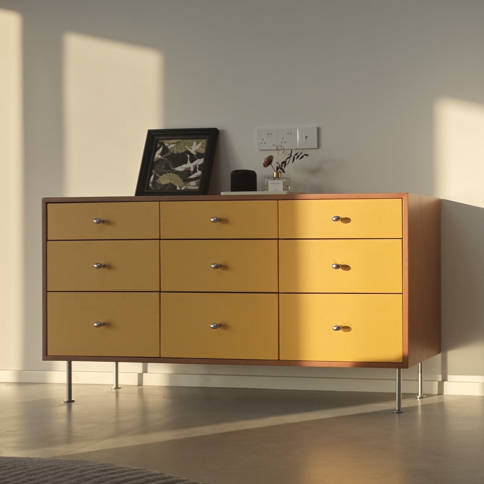 中古风六斗柜实木抽屉餐边柜卧室床尾收纳储物柜复古九斗柜包豪斯