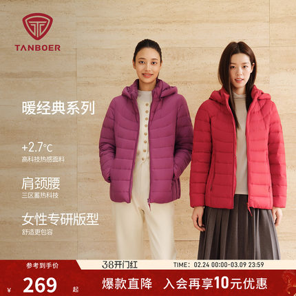 坦博尔秋季轻薄羽绒服女士中老年装送妈妈保暖可脱卸帽显气质外套