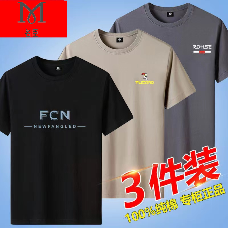 夏季新款男士纯棉短袖t恤男圆领宽松大码半袖男士打底衫百搭上衣