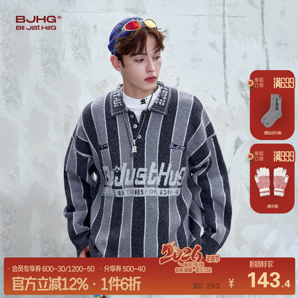 BJHG不计后果赛车风polo领毛衣男款冬复古条纹情侣绵羊毛针织衫女