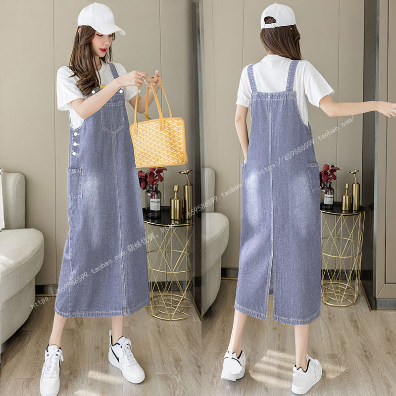 大码背带连衣裙中长款牛仔裙宽松