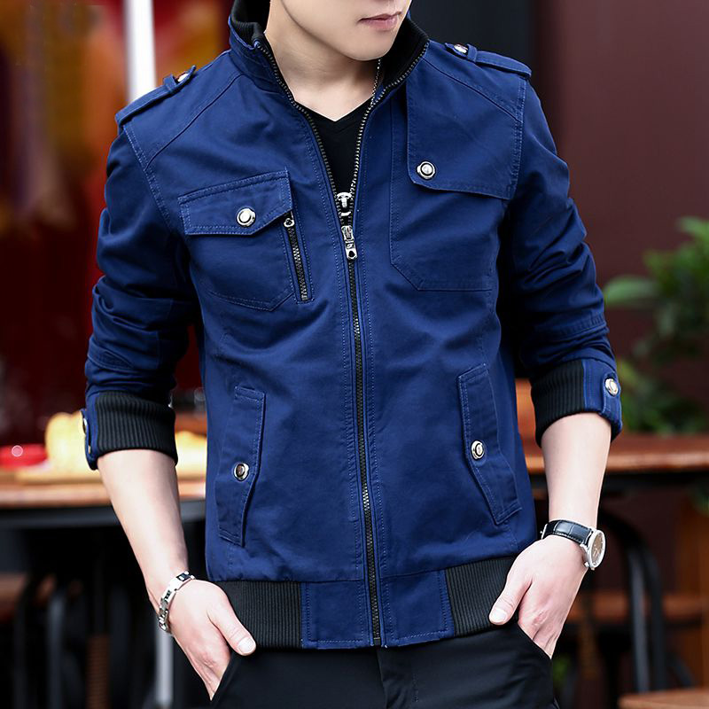 工装军旅夹克衫男春秋新品纯棉多口袋立领外套潮流修身薄款帆布衣