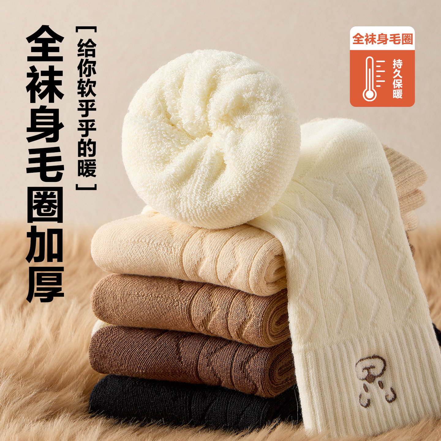 南极人毛圈袜子女士加绒加厚保暖冬季女款中筒袜2025新款冬天长袜