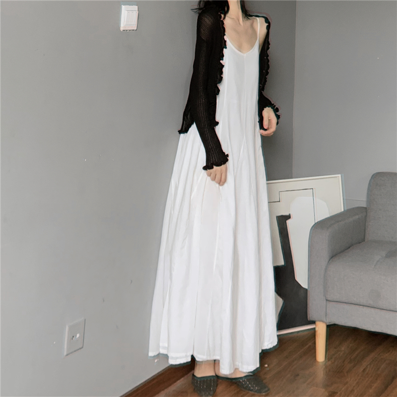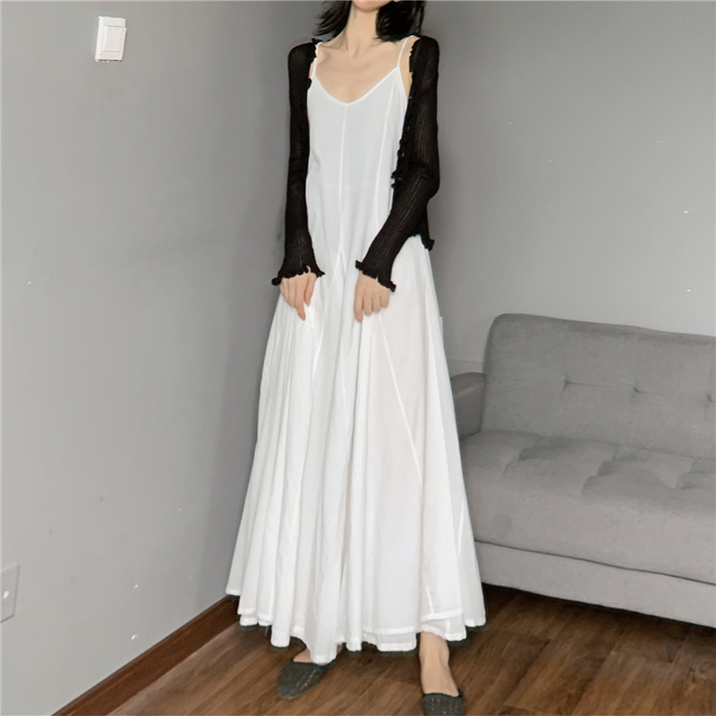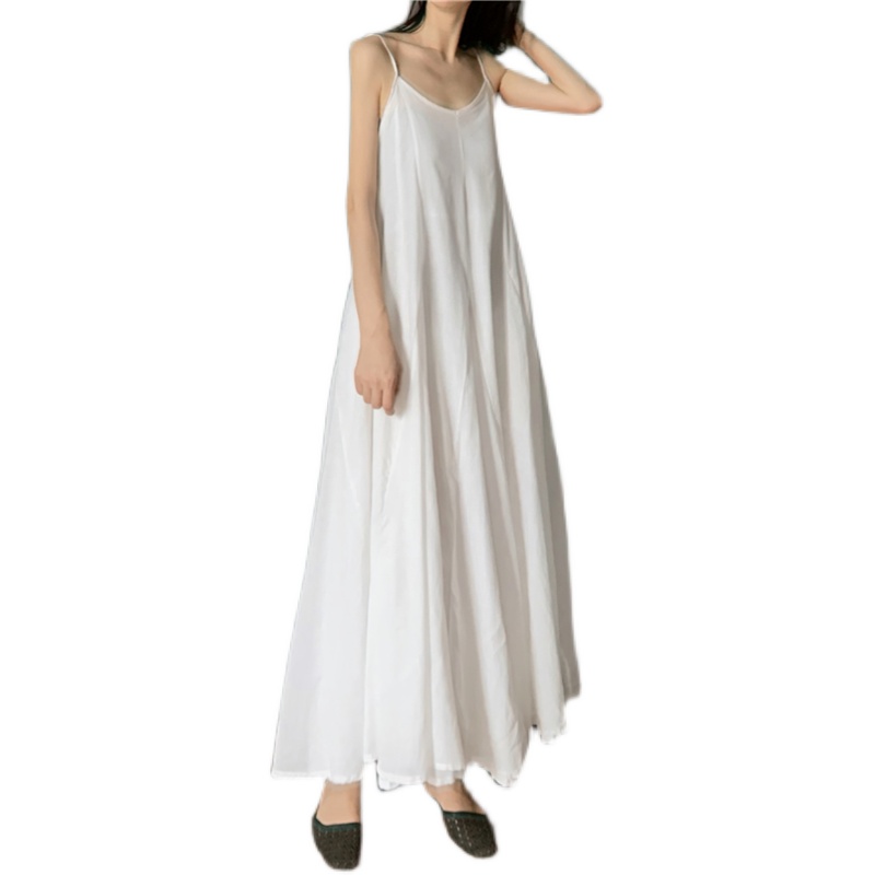 高个子女生连衣裙到脚踝 飘逸大摆休闲长裙 文艺范棉麻复古吊带裙