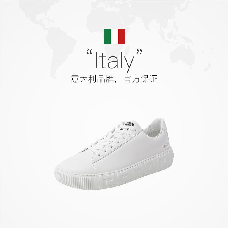 【自营】Versace/范思哲男士牛皮革系带休闲运动鞋小白鞋厚底板鞋