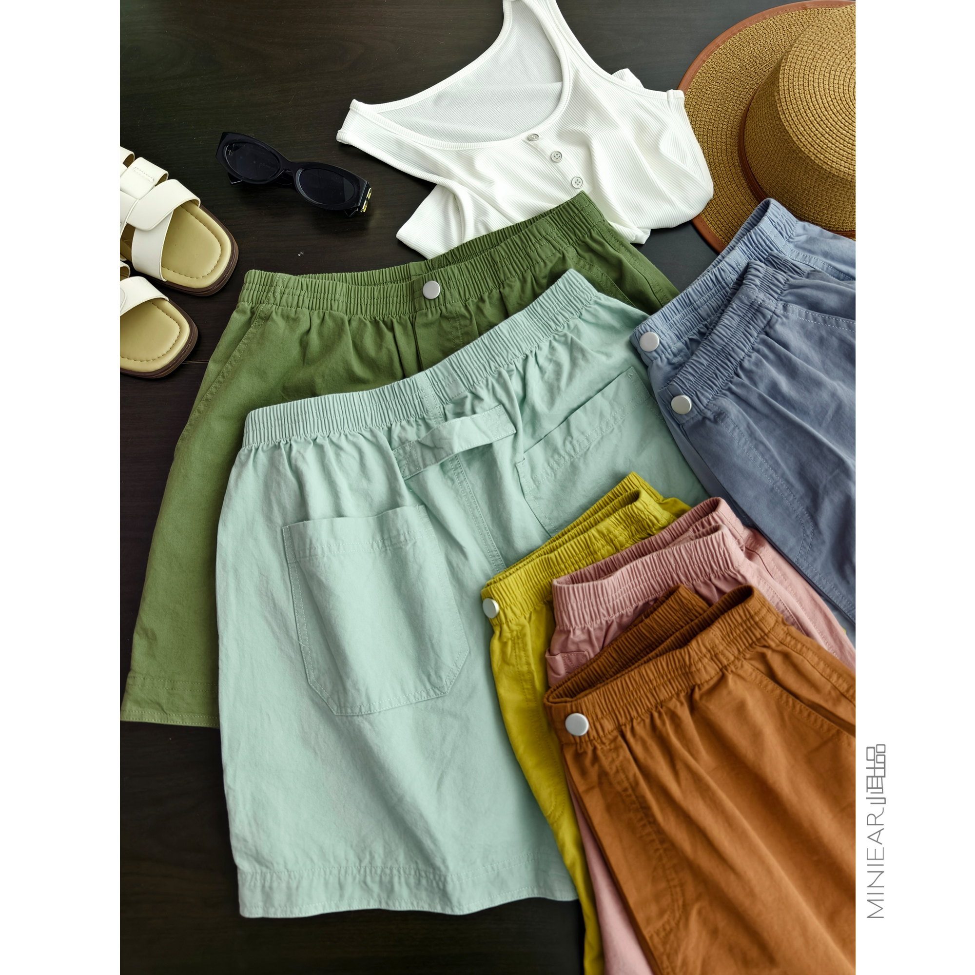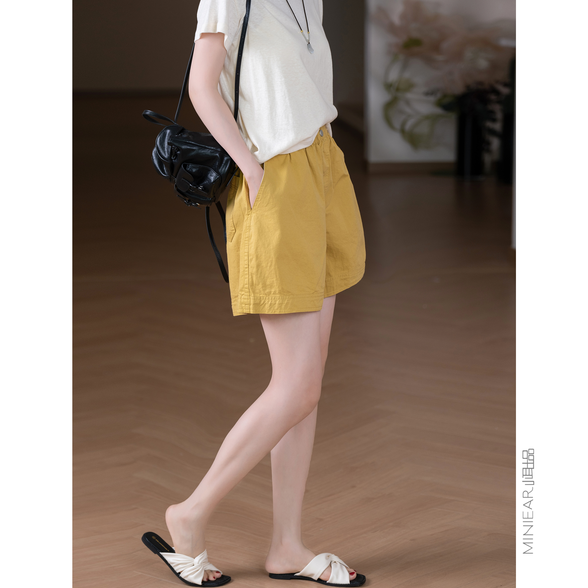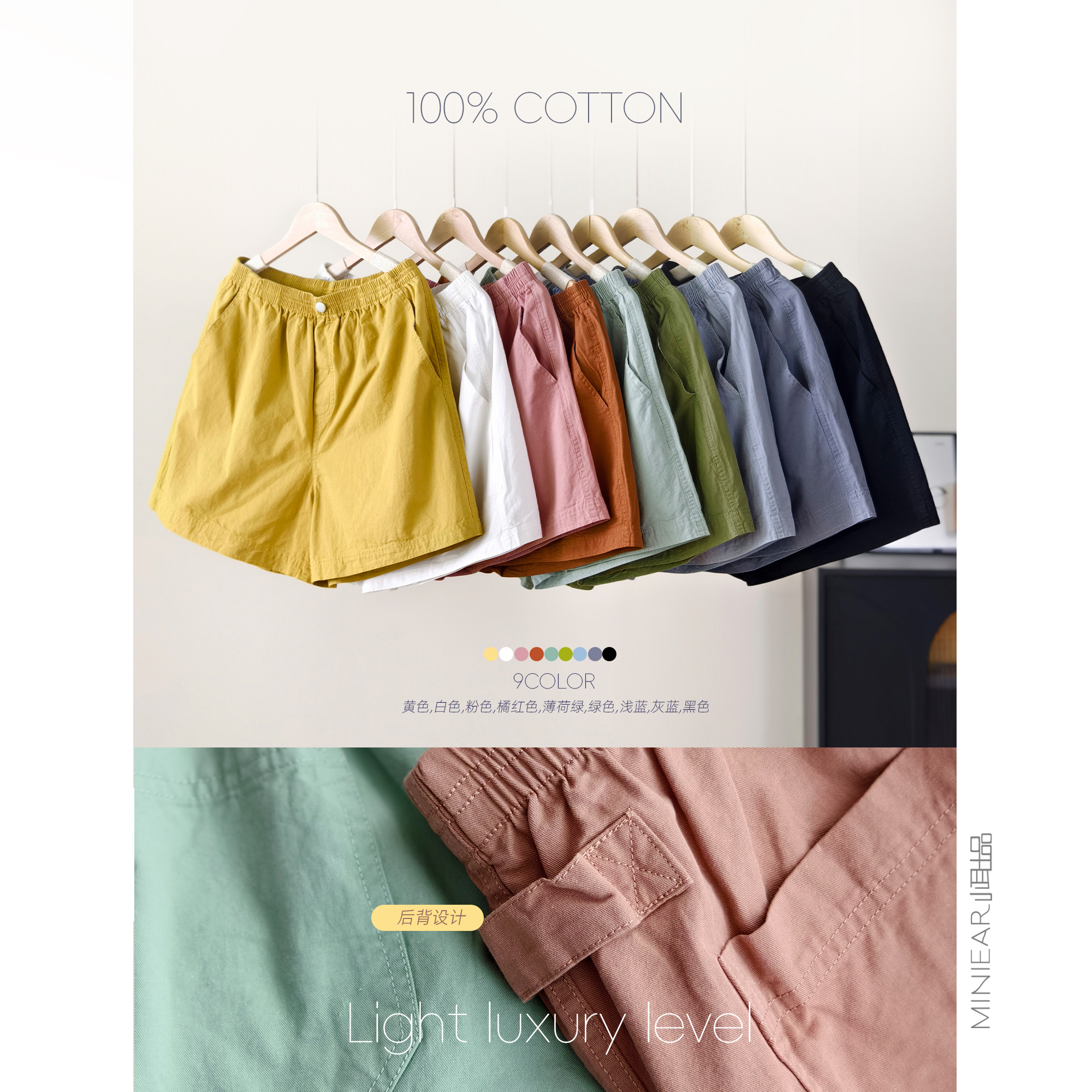 小耳出品【9色可选~安心全棉~】时尚松紧腰百搭显瘦阔腿休闲短裤
