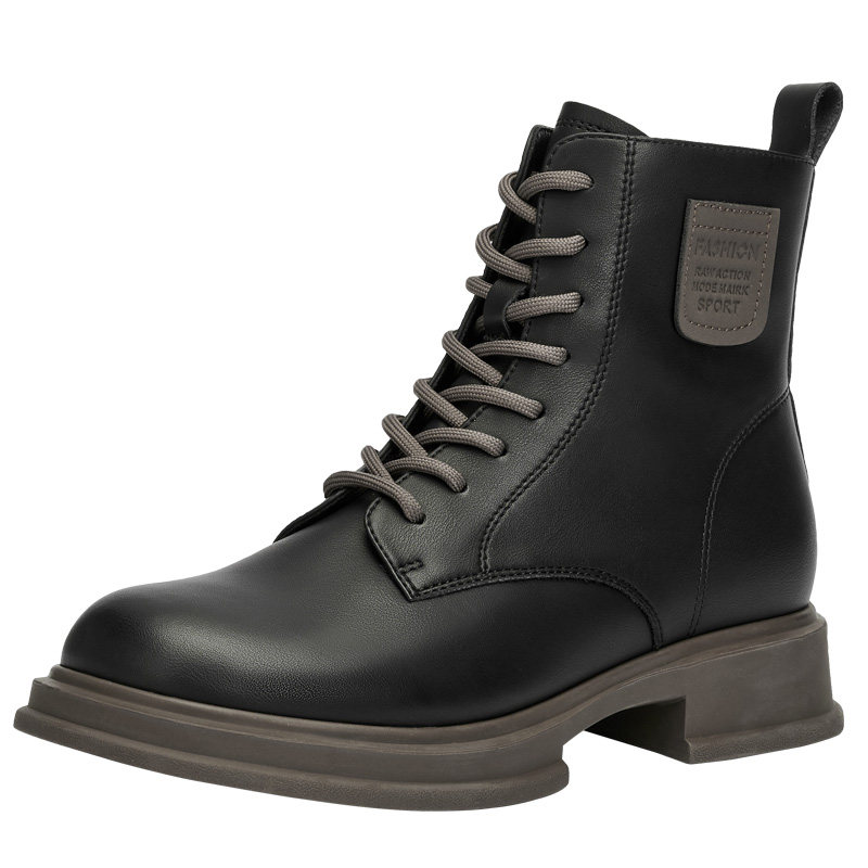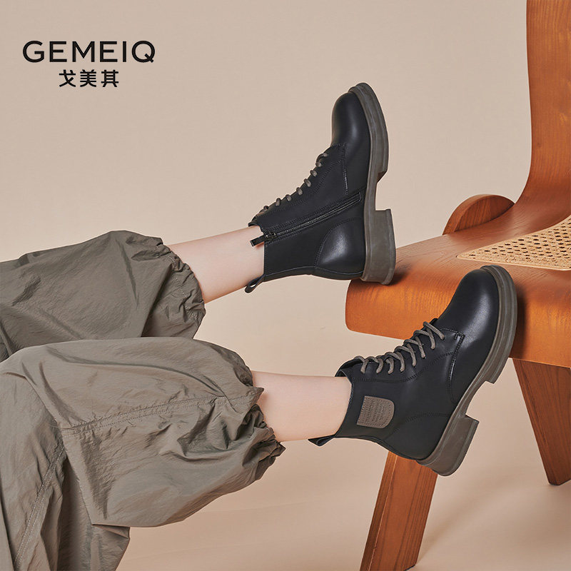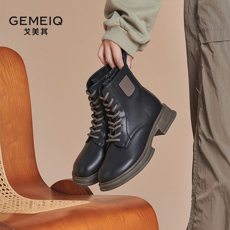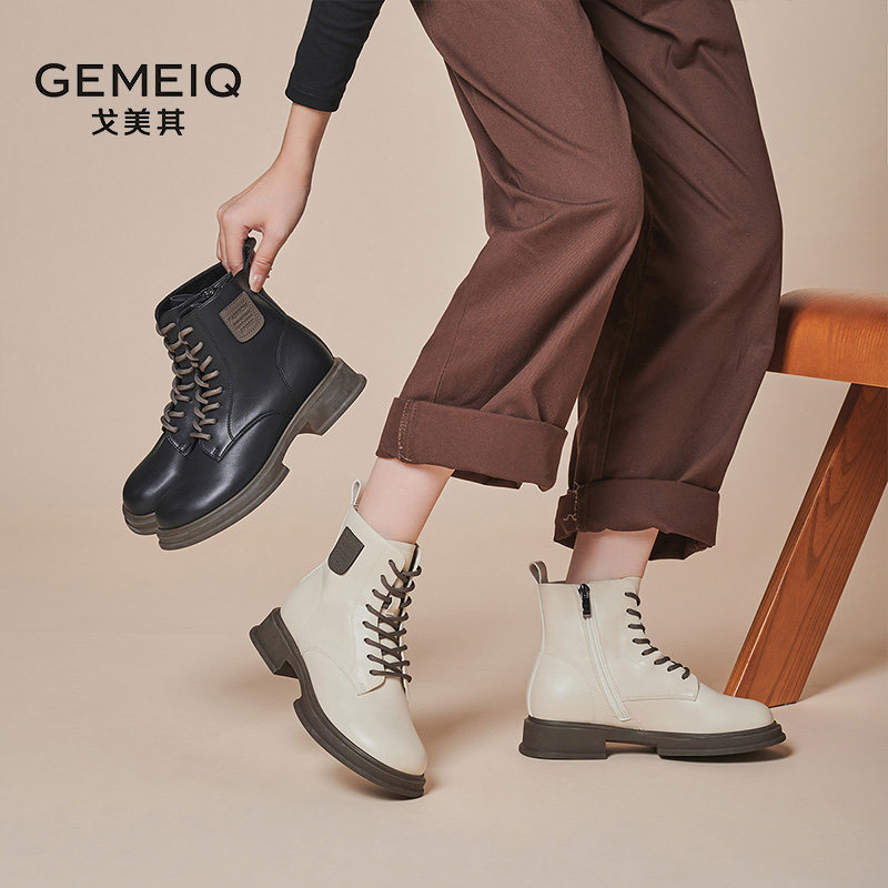 戈美其厚底加绒瘦瘦靴女2025春季新款增高小个子复古英伦风马丁靴