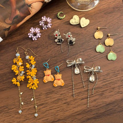 觅韩可爱卡通时尚简约花朵几何耳环小众流行设计感耳饰不参与满减