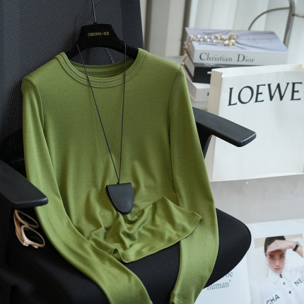 虫小小 天丝羊毛弹力长袖圆领修身显瘦T恤女上衣打底衫春夏975D