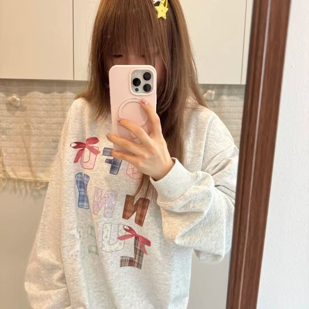韩系印花卫衣女2025新款圆领长袖ootd学生宽松百搭上衣