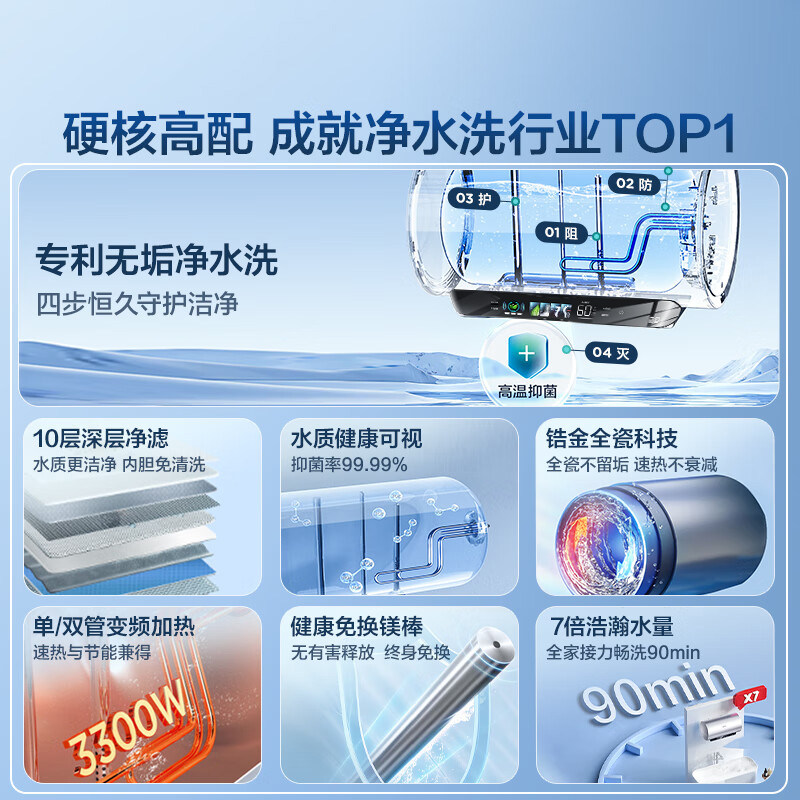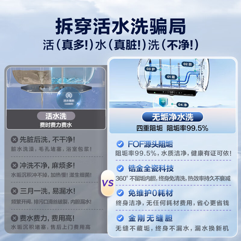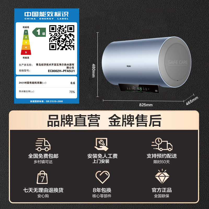 【国补】海尔电热水器家用60升免清洗80升PFA5双管一级净水洗PFA7