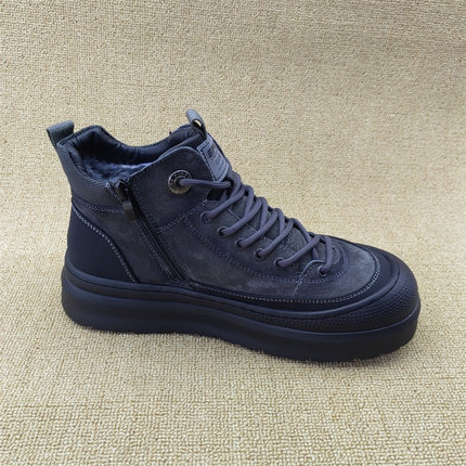 2025冬季新款真皮男鞋高帮休闲鞋侧拉链防滑羊毛保暖户外鞋皮鞋