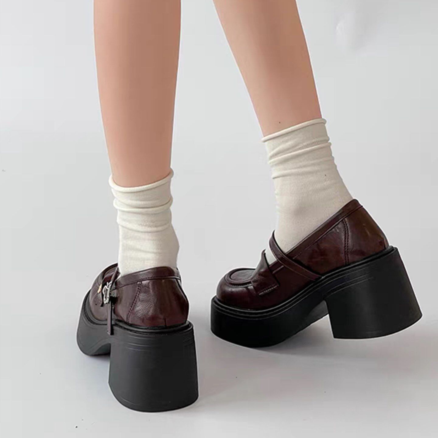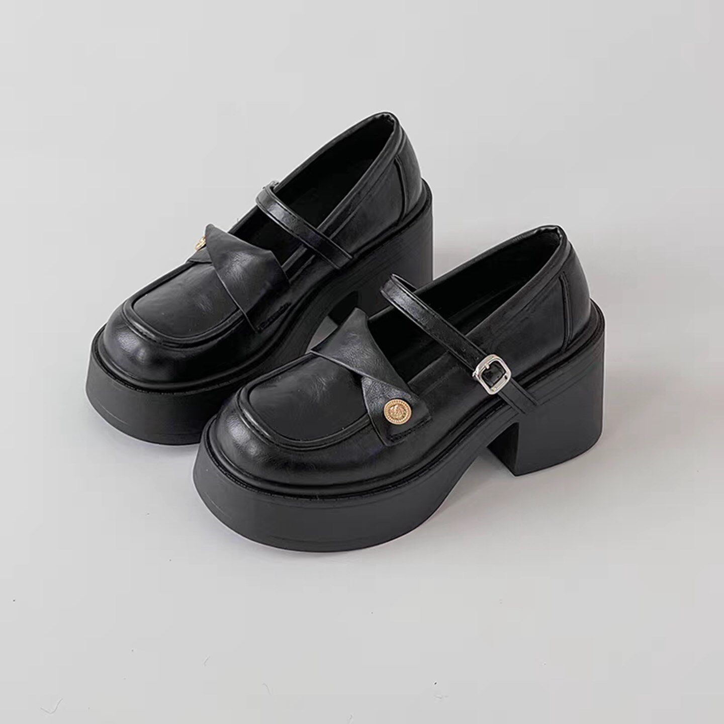 英伦风粗跟厚底玛丽珍小皮鞋女