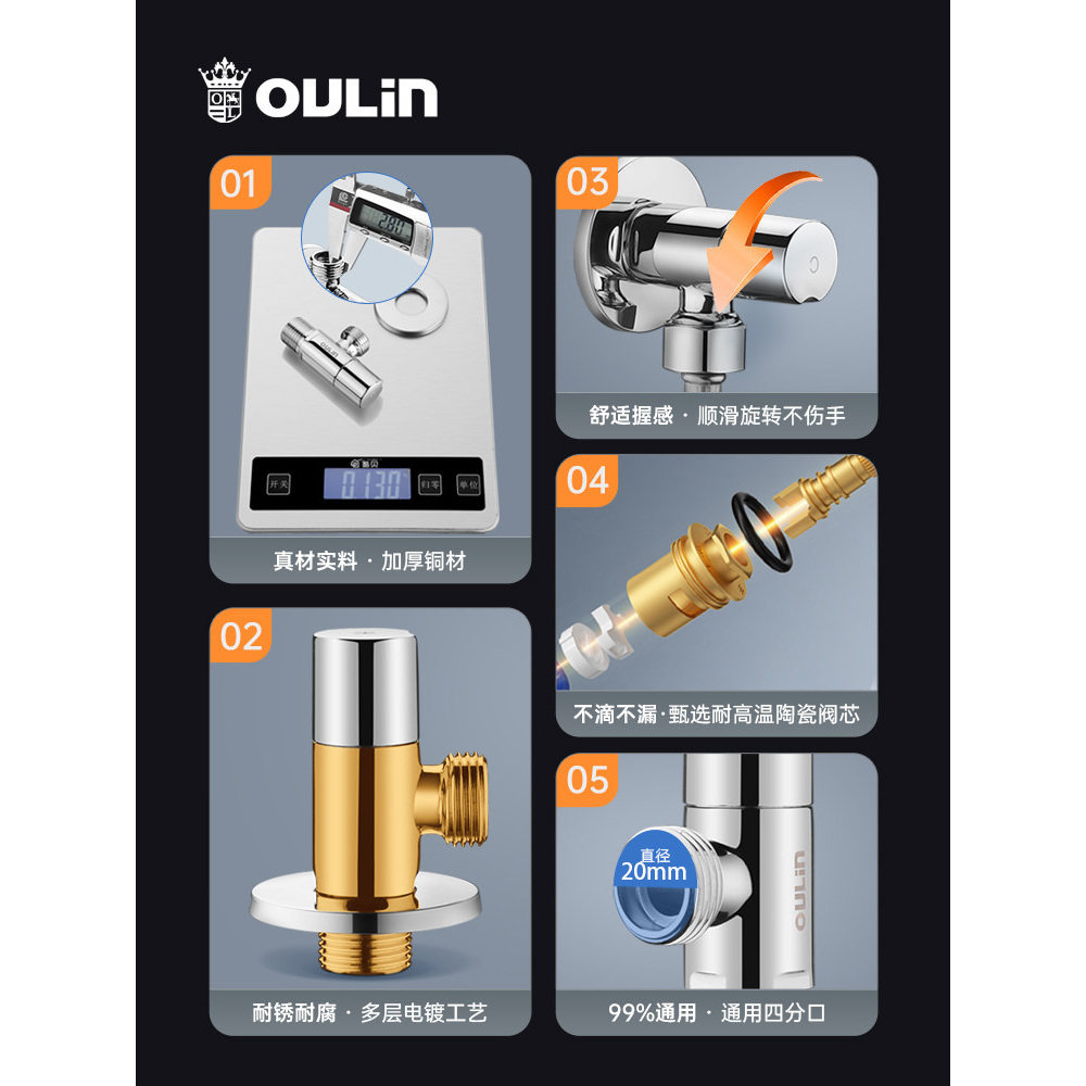 欧琳角阀全铜三角阀门热水器水阀冷热水阀门开关马桶家用